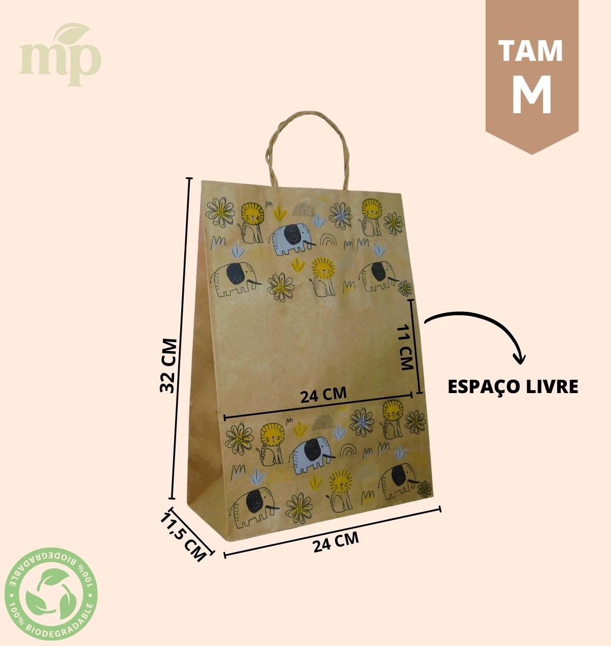 – Tamanho M Altura: 32cm, largura/frente: 24cm, largura/lateral: 11,5cm – Tamanho ideal para pequenos e médios presentes.